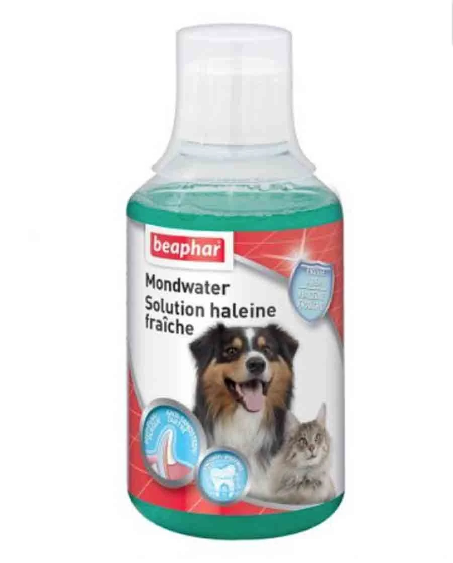 La solution haleine fraîche Mondwater de Beaphar est une solution concentrée pour chiens et chats.