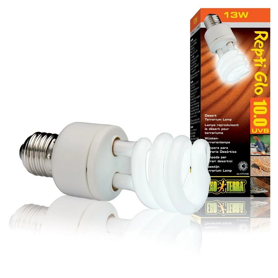 L’ampoule UVB150 Exo Terra pour reptiles a un rendement UVB très élevé semblable à la lumière du soleil dans le désert.