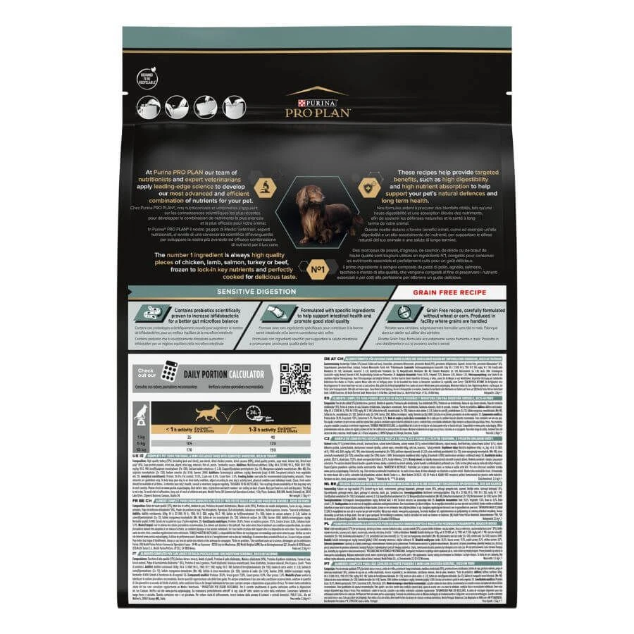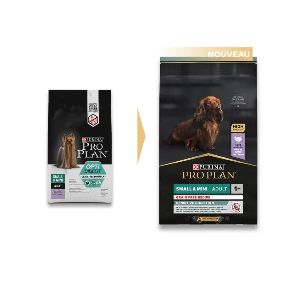Purina ProPlan Chien Small & Mini Adult OPTIDIGEST Grain Free Dinde est un aliment complet sans céréales pour chiens adultes de petite taille.