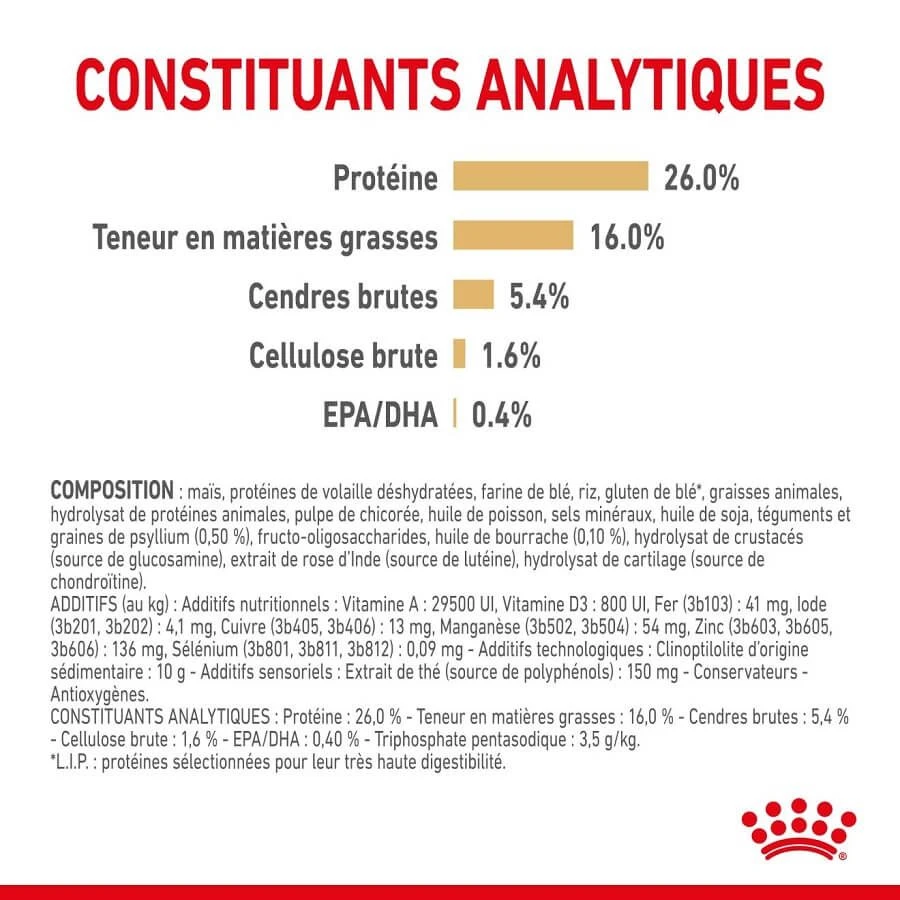 Cette formule contribue également à soutenir le rôle de la peau en tant que barrière, aide à maintenir la santé de la peau et à nourrir le pelage. De plus, il contient un mélange équilibré de fibres, dont du psyllium, qui aide à faciliter le transit intestinal et des protéines hautement digestibles (L.I.P*) qui favorisent des selles de qualité optimale.