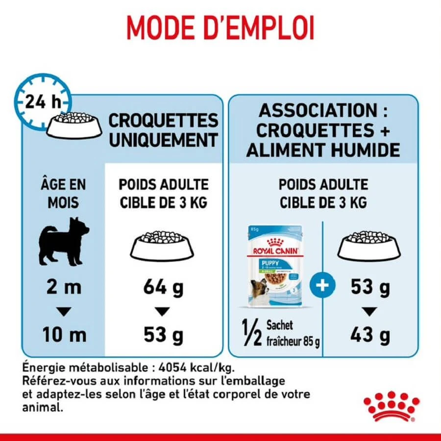 Elle est indiquée chez les chiots de toutes petites races, de 2 mois jusqu’à 10 mois et dont le poids adulte devrait atteindre 4 kg maximum.